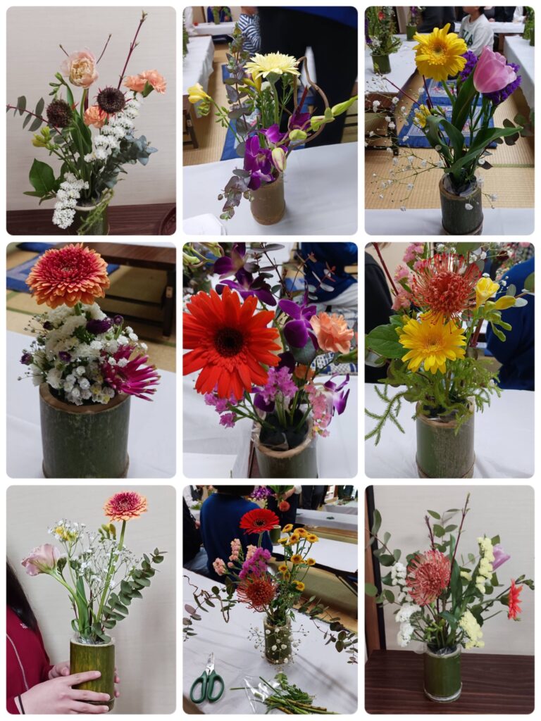 作品は各自お持ち帰りいただきました。参加していただいた皆さんが、このいけばなを眺めてホッとするひとときを過ごしてくれると幸いです。